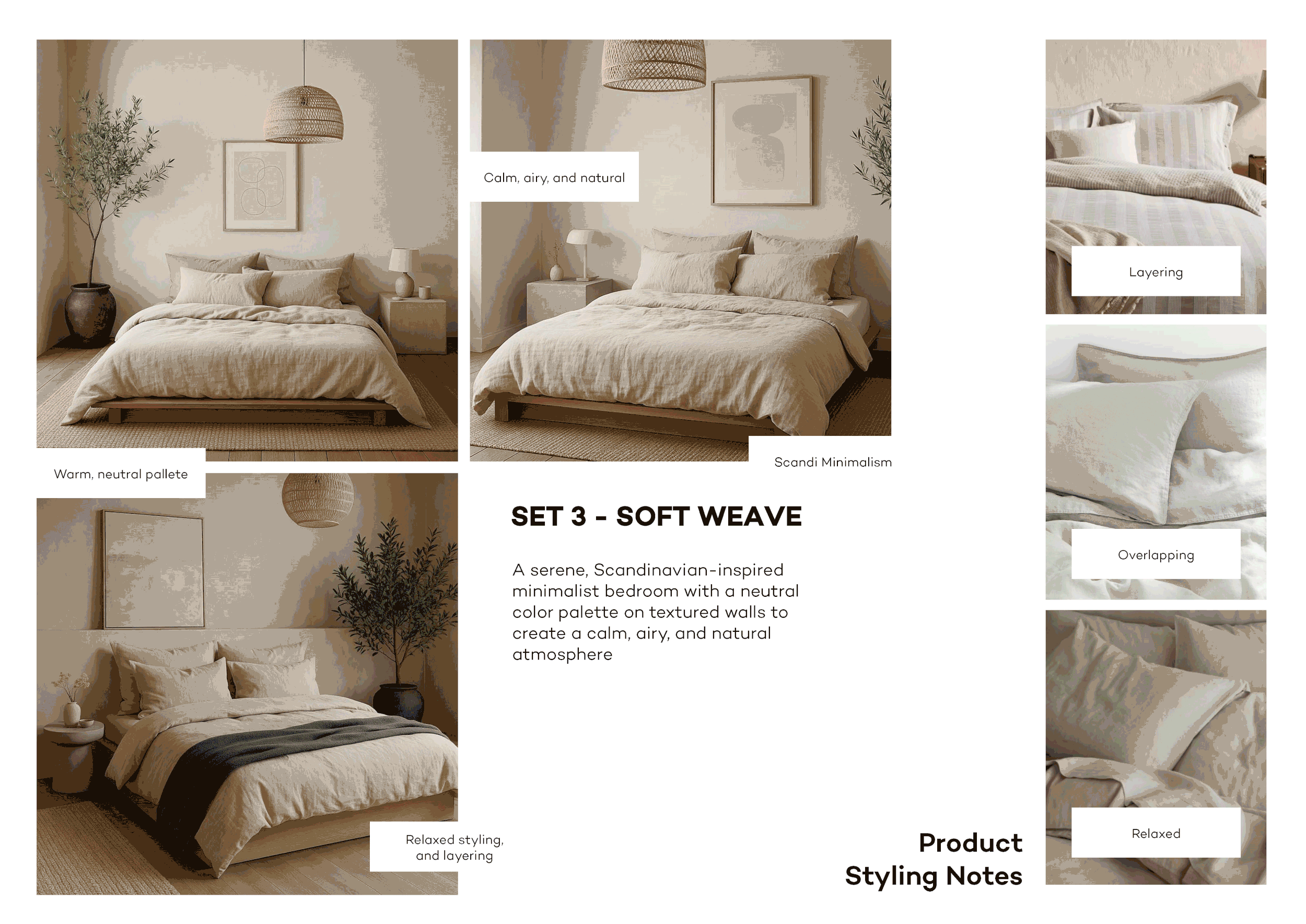 The Soft Weave Collection marked a new chapter for Night Lark - introducing a softer, more relaxed direction for the photography and overall visual tone. Inspired by Scandinavian simplicity, the shoot focused on natural light, texture and warmth to capture the effortless calm of the new range. Through a refined, minimal set design and a muted, sunlit palette, the campaign redefined how we expressed comfort - serene, tactile and quietly luxurious.